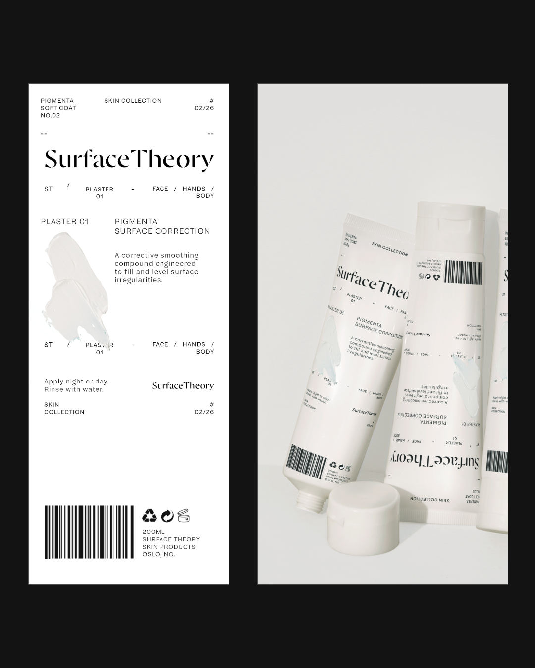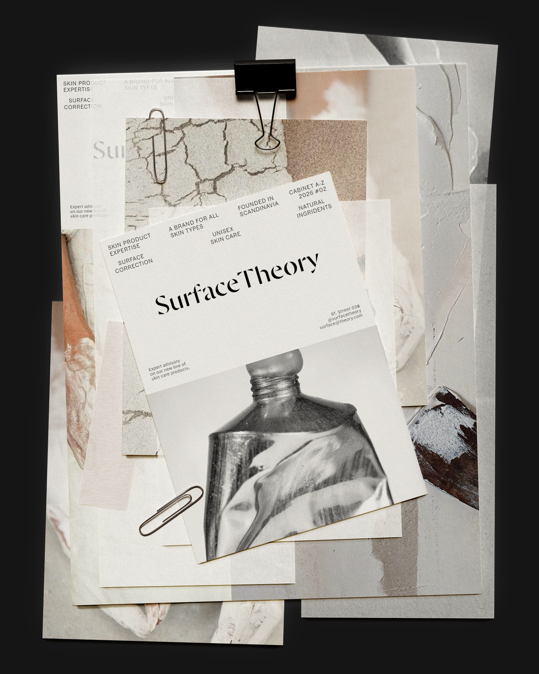 Contemporary new artists as models. Atelier feel. The aesthetic of: studio shots of painter Helena Frankenthaler + industrial design. Materials and tools for making and preserving beauty / art. The care for unique surfaces. Stainless steel. Soft tones. Concrete. Patina. Transparency. Plaster and paint as creams and masks.